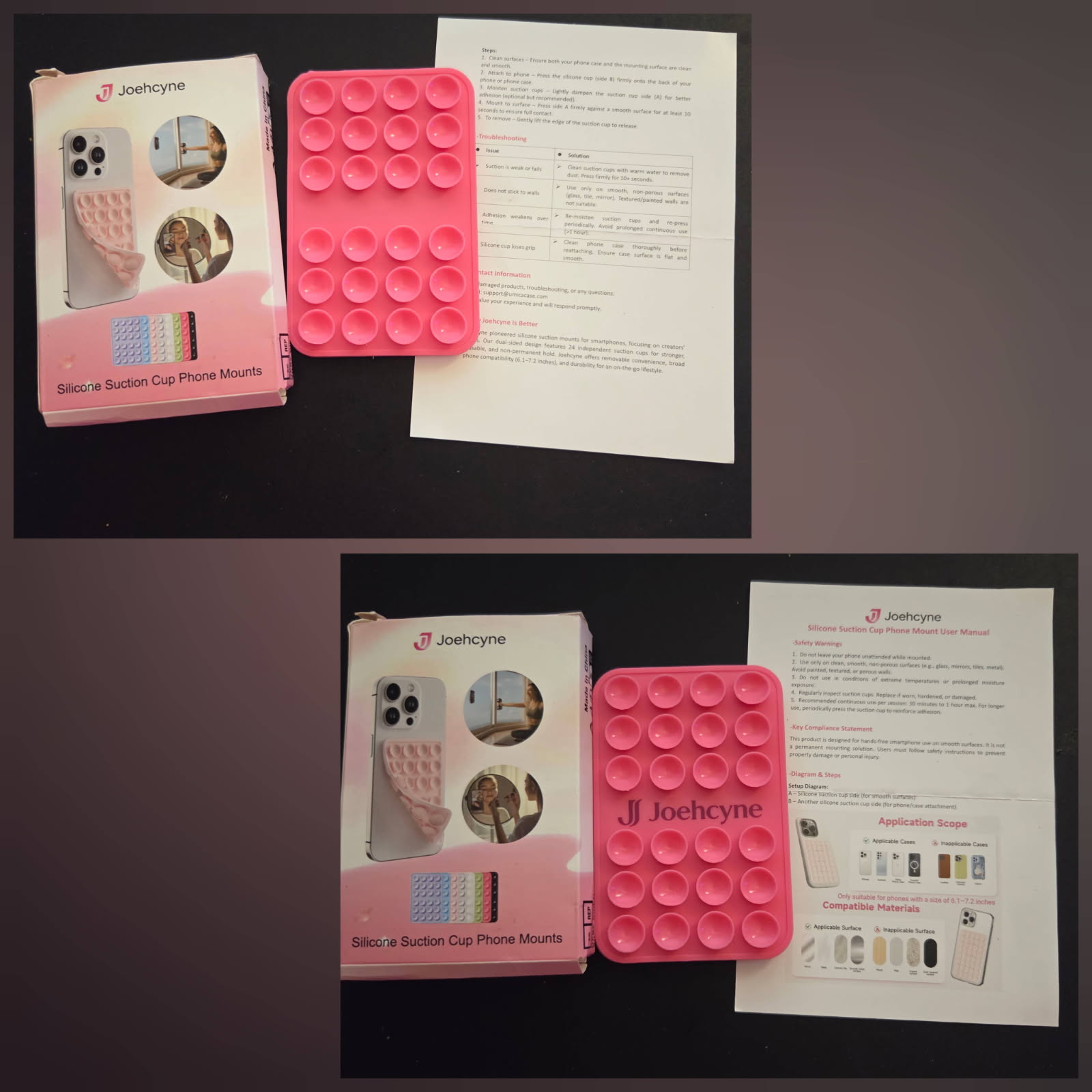 Joehcyne Suction Phone Case Mount Silicone, Rose Red