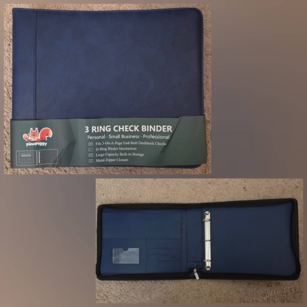 PinePiggy Zipper 3 Ring Personal Check Binder, Navy Blue