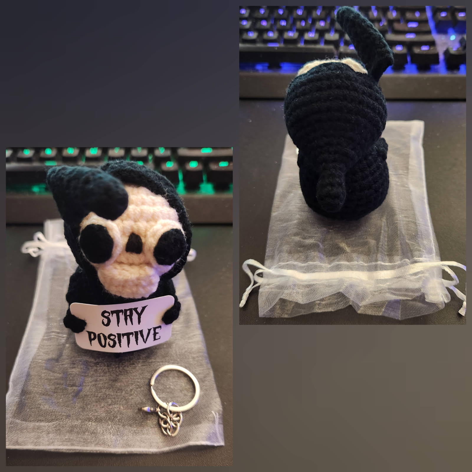 Frabaca Funny Gothic Grim Reaper Crochet Plush - Spooky Cute Halloween Decor & Dark Humor Gift - Christmas White Elephant Boo Basket Stuffers Stay Positive Sarcastic Desk Sign for Coworkers Friends Amazon Review