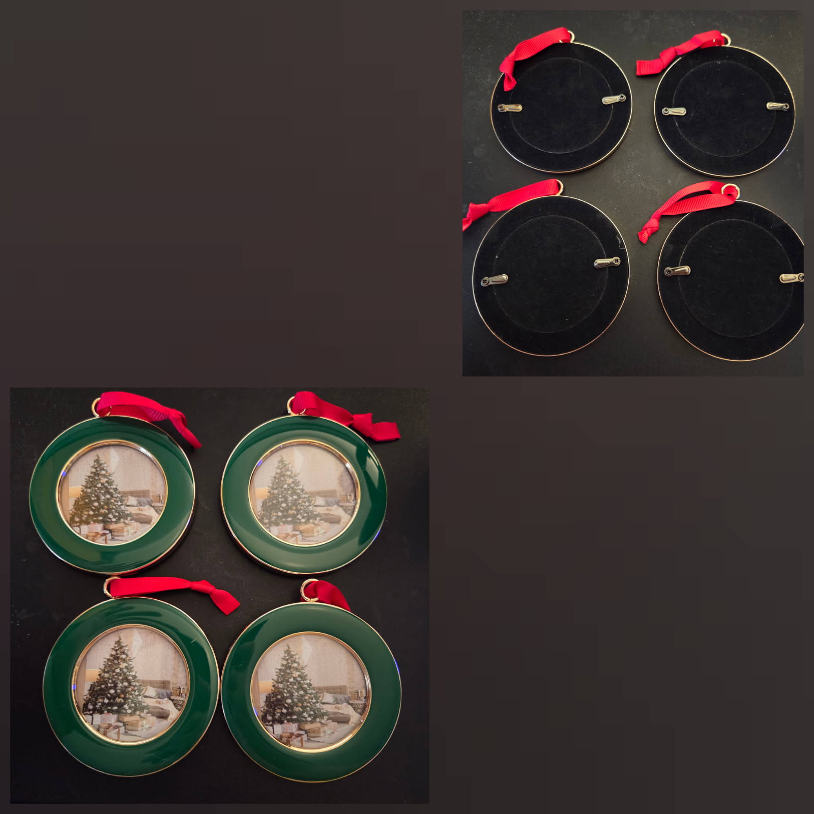 ACHAVINM Christmas Picture Frame Ornaments - Set of 4 Green 2.5x2.5 Inch Mini Frames with Red Ribbon, Metal Photo Frames for Christmas Tree Decorations, Holiday Gift for Family & Friends Amazon Review