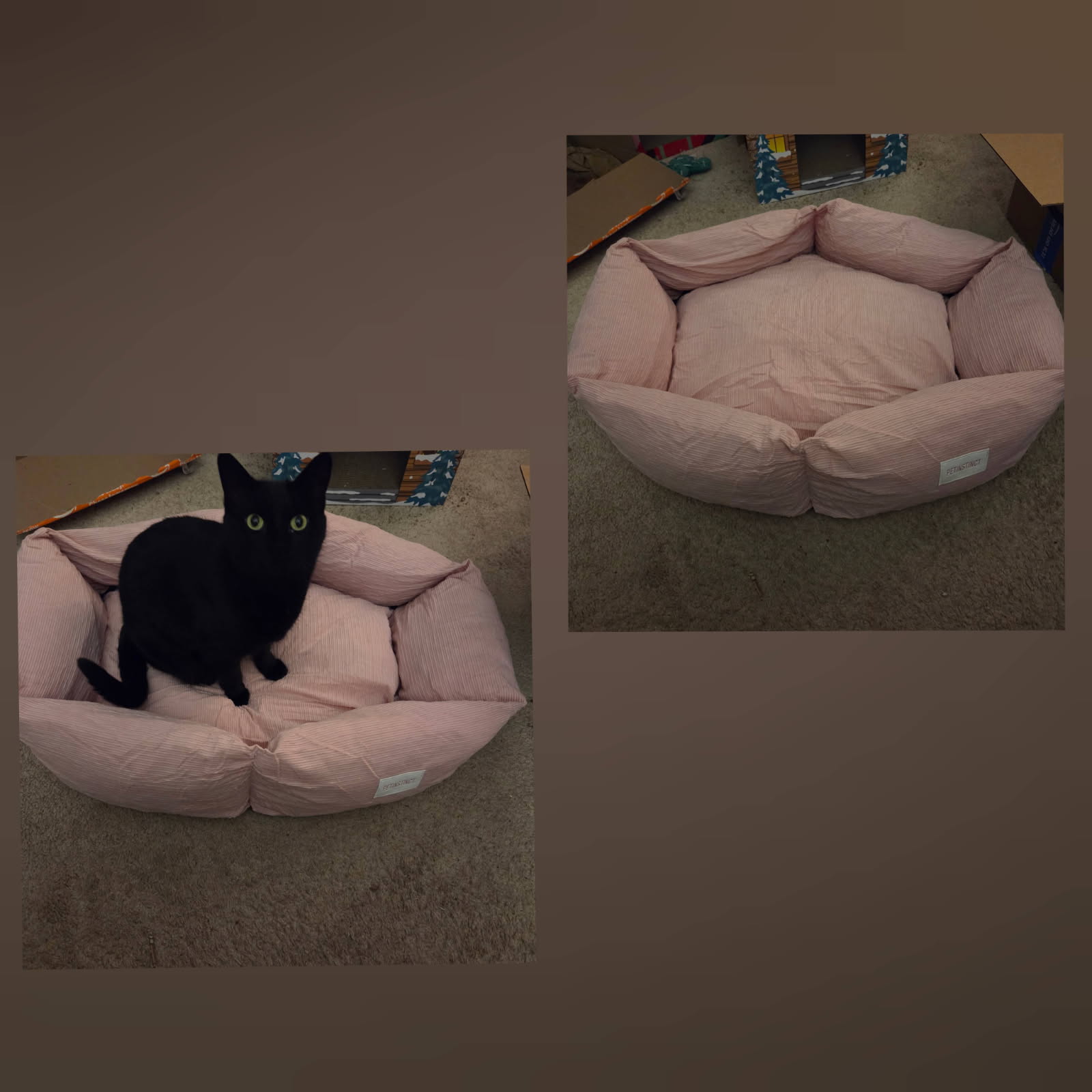 I purchased the Petinstinct Medium Dog Bed, 30 Inch Washable Corduroy Dog Bed with Removable Cover & Anti-Slip Bottom , Durable Comfort for Medium to Large Dogs up to 45 lbs (Pink) from Amazon and it was delivered in a timely fashion. The material this bed is made of is a nice, thick corduroy. Each little section has a zipper so that the bedding part can be removed and washed. This bed does come tightly vacuum sealed and does need to fluff up a bit after taking it out of the package like the instructions state. It's a nice shade of pastel pink. There is a gripper surface on the bottom of the bed to reduce slipping. My cats are 11 and 14lbs. They both fit into the bed easily. After it fluffs up, the bedding is nice and soft. A bigger plus is that this bed is very washable with all the zippers. Many beds aren't washable at all. I would purchase this item again if needed and I would recommend this item to my family. amazon listing.